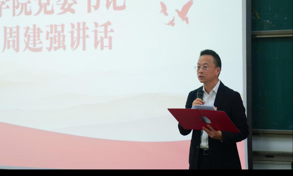 周建强以《以二十届四中全会精神为指引,争做新时代合格学生党员》为题,围绕全会精神要义、学院发展实际与学生成长需求,向全体学生党员提出殷切期望:要牢记党的宗旨,在“人民至上”中践行初心使命;增强党性意识,在“从严治学”中锤炼政治品格;提高综合素质,在“强国建设”中练就过硬本领;树立先锋形象,在“示范引领”中彰显党员本色,努力为学校建设德智体美劳全面育人的“更好”大学贡献青春力量。