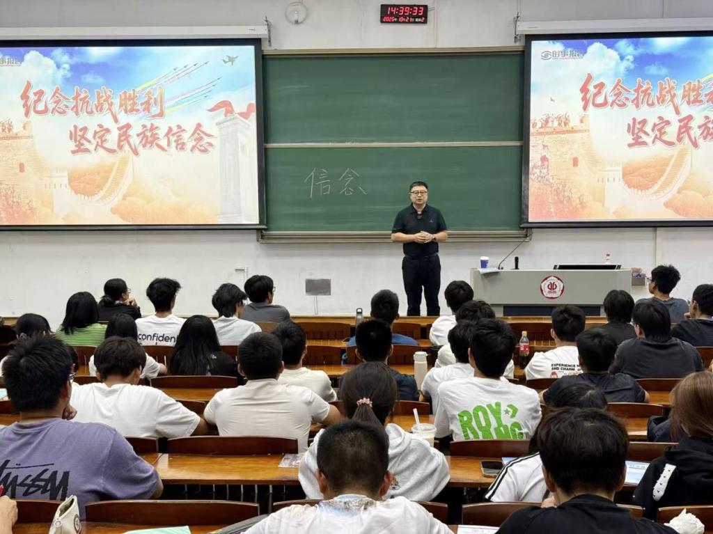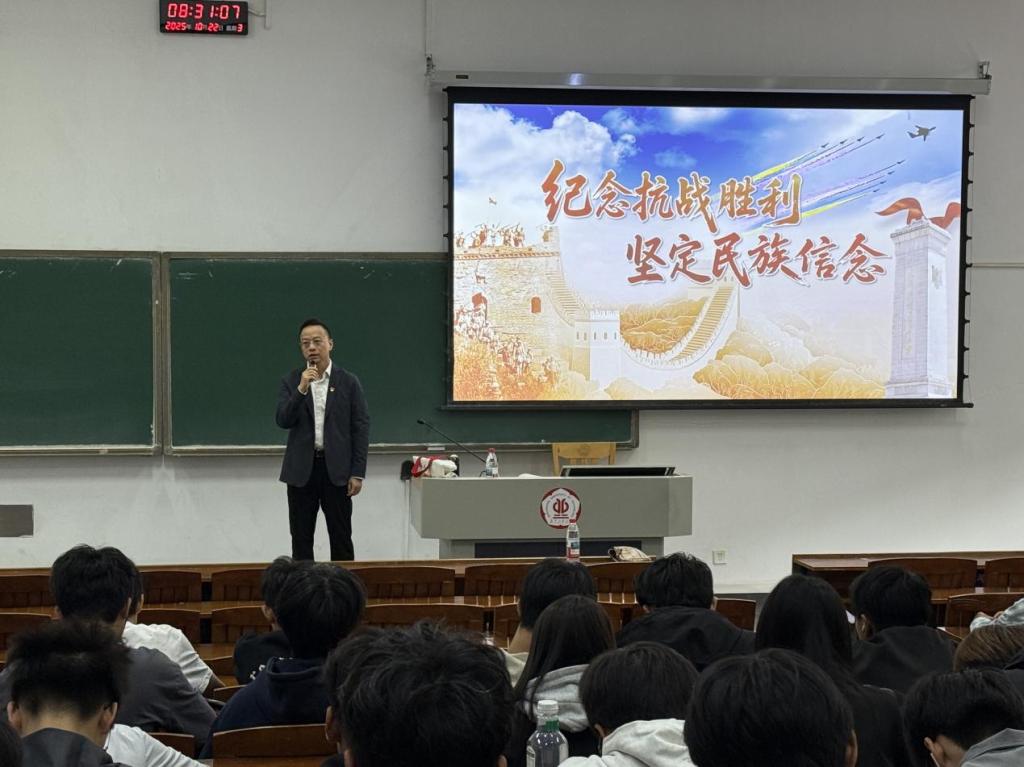 21日,赵志伟以“纪念抗战胜利,坚定民族信念”为主题,拉开了本次思政课的序幕。他以“信念”为引,在举国纪念抗日战争胜利80周年的重要历史节点,为同学们带来一堂深刻而富有时代意义的思政课。他借助详实的历史文献、珍贵的影像资料,带领同学们重回那段风雨如晦的岁月,生动展示了中华民族在14年抗战中所彰显的不屈意志与抗争精神。课程中,他深入阐释中国共产党作为全民族抗战中流砥柱的关键作用,深刻剖析抗战精神在新时代的传承意义,引导同学们树立正确的中华民族历史观,从厚重的民族记忆中汲取砥砺前行的精神力量。
